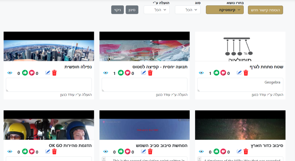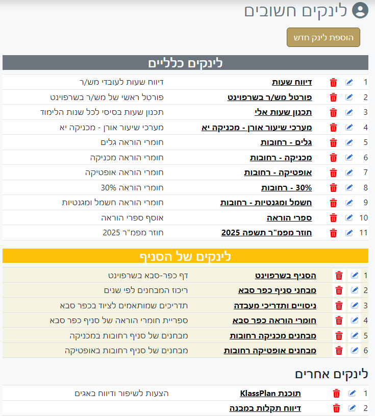 - שיתוף קישורים לחומרי הוראה לפי נושאים