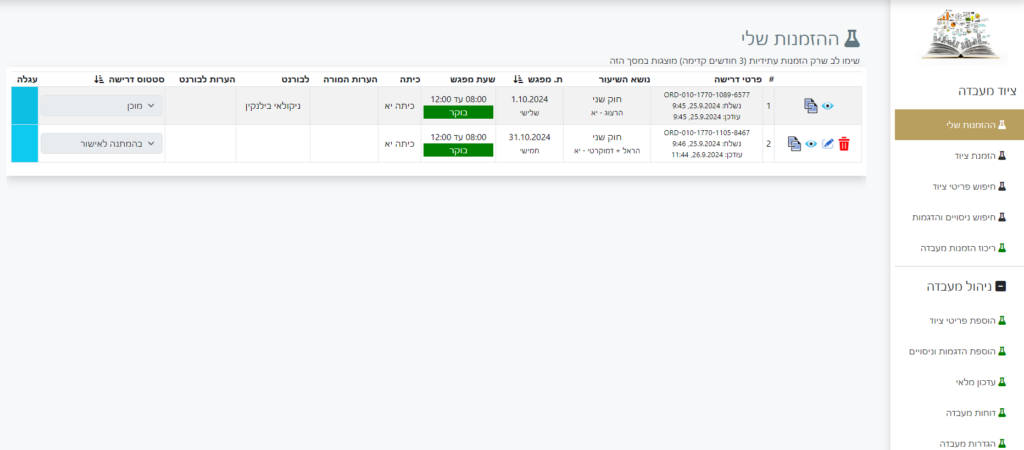 - צפייה של מורים בהזמנות העתידיות שלהם