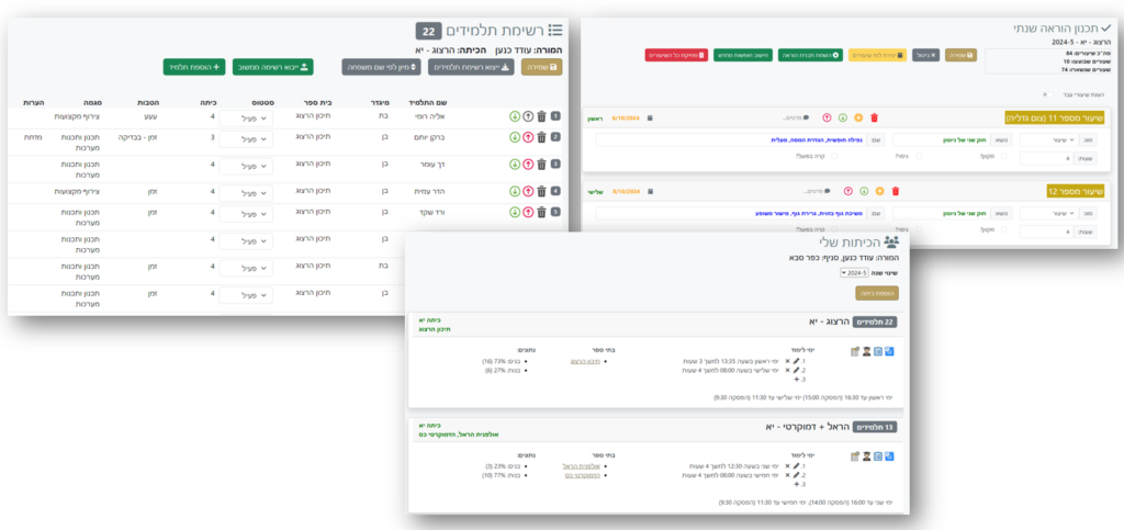 - ניהול רשימת הכיתות ושעות הלימוד