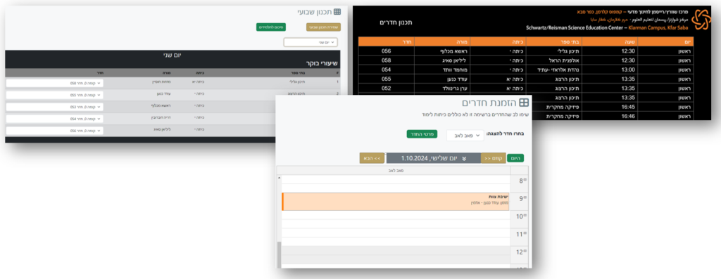 - אפשרות הזמנת חדרים שאינם כיתות לימוד (לדוגמה, חדרי ישיבות)