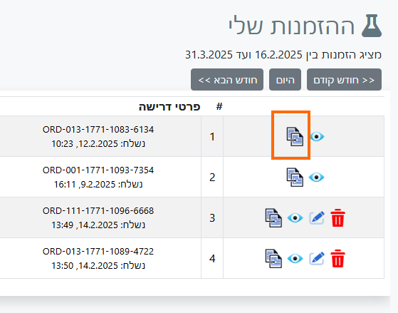 בכל שלב, אתם יכולים לשכפל הזמנת ציוד מעבדה קיימת (או ישנה) .