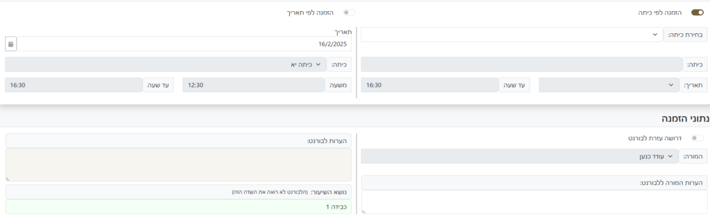 - מלאו בטופס את פרטי הכיתה ומועד השיעור