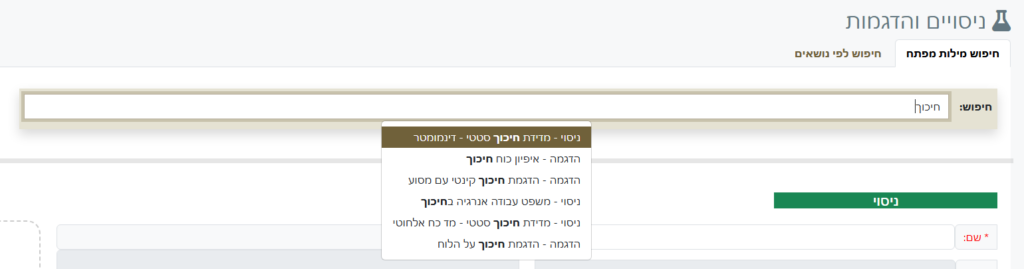 הקלידו מילות מפתח וקבלו רשימה של ניסויים והדגמות רלוונטיים.