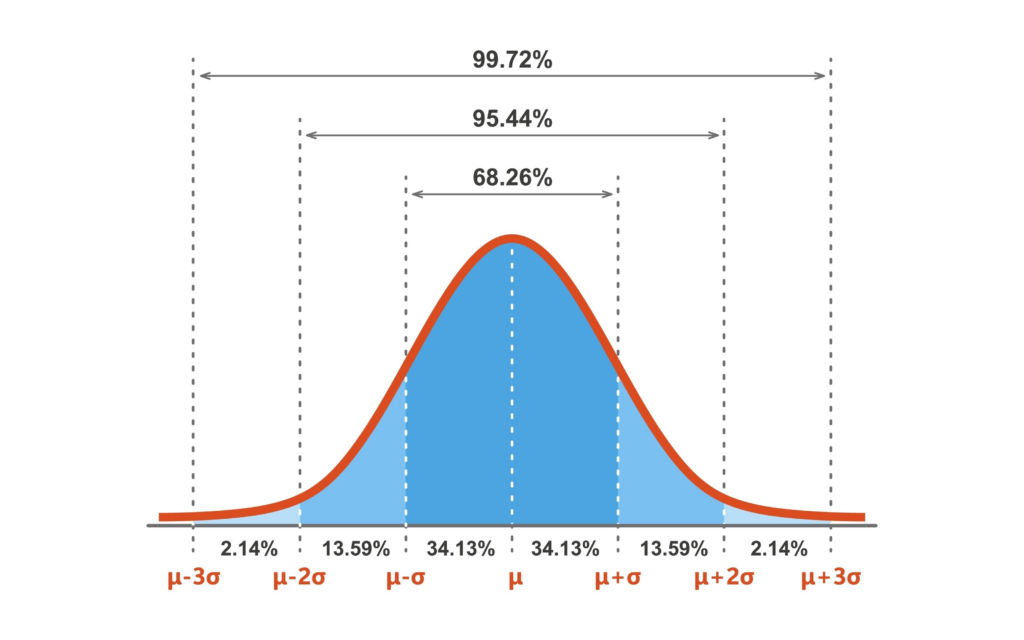 - ממוצע (mu): המרכז של ההתפלגות. במקרה של ציונים, זהו הציון הממוצע של כל התלמידים בכיתה.
