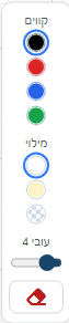 - עובי הקווים – במידה וצורה נבחרה, שינוי העובי ישנה את עובי מסגרת הצורה